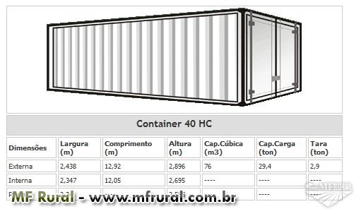 Dimensões, pés, pés, 40ft x8ft x 9ft 6in hi-cube.