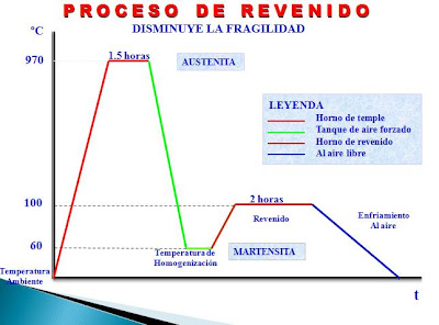 Tratamientos térmicos en hornos atmosféricos y de vacío. Posterior al temple se realiza un tratamiento de revenido de tipo a temperaturas de entre 2ºC y. Revenido: es un tratamiento complementario y similar al temple, del que se diferencia en la velocidad de enfriamiento. Mediante el revenido se consigue cierta .